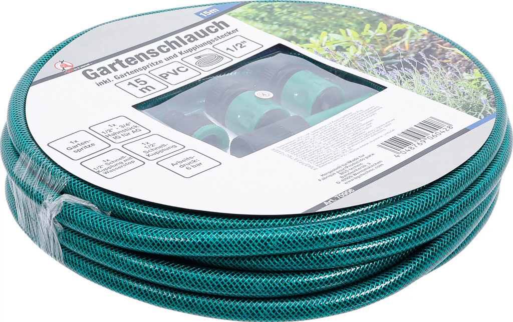 Technické údaje:Trojvrstvová konštrukcia pre vysokú odolnosťKrížová tkanina z polyesteru odolného voči roztrhnutiuNastaviteľný rozprašovač: od jemnej hmly po plný prúdKompatibilná so štandardnými záhradnými systémamiTlak pri roztrhnutí: 18 barHrúbka steny: 2 mmVnútorný priemer: 11,5 mmVonkajší priemer: 15,5 mmMateriály: ABS plast, PP (polypropylén)Obsah balenia:1× vodná hadica 3-vrstvová s krížovou tkaninou, PVC, dĺžka 15 m1× nastaviteľný rozprašovač vody1× adaptér na kohútik: vnútorný závit 3/4", vonkajší závit 1/2"1× rýchlospojka na kohútik: vnútorný závit 1/2"1× rýchlospojka 1/2"1× rýchlospojka 1/2" so zastavením vody.