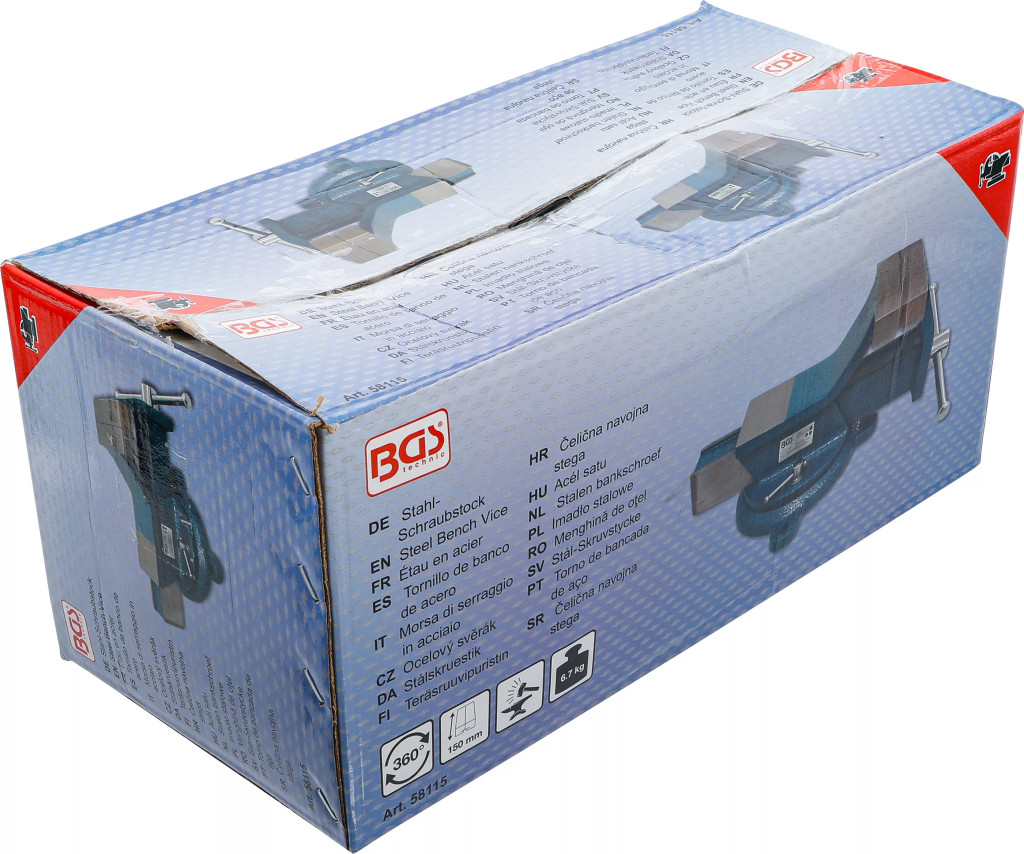 Technické údaje:Typ: paralelný zverák s nákovkouKonštrukcia: kovaná, mimoriadne odolnáČeľuste a nákovka: kalené pre dlhú životnosť a presné uchytenieUpínacie čeľuste: vysoko tvarované pre pevné a spoľahlivé uchytenie obrobkuPovrch nákovy: vhodný na rovnanie a ubíjanieZákladňa: otočná o 360°, s možnosťou uzamknutia v požadovanej poloheMaximálne otvorenie čeľustí: 170 mm.