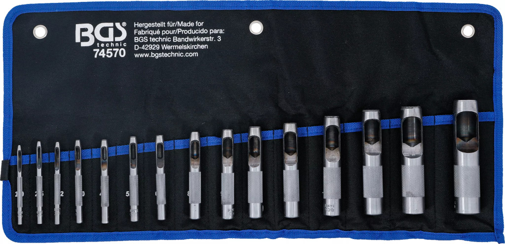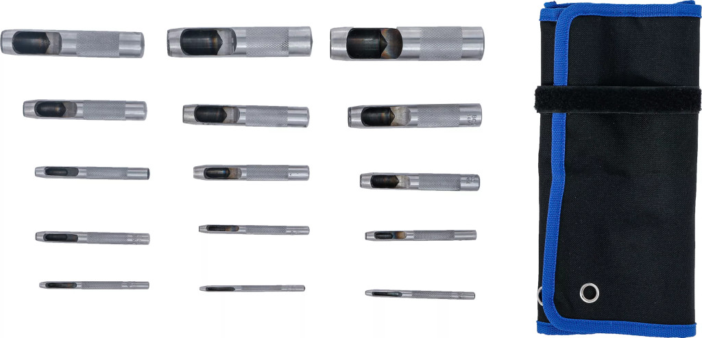Vlastnosti:kruhové dierovacie nástrojetvrdená rezacia hranadrážkovaná úchopová časť pre bezpečné držanielisované označenie veľkostí na tele nástrojadodávané v praktickom zvinovacom Tetron puzdre pre prehľadné uloženie a jednoduché prenášanieObsah balenia (15 ks):1 × dierovač Ø 2,0 mm1 × dierovač Ø 2,5 mm1 × dierovač Ø 3,2 mm1 × dierovač Ø 4,0 mm1 × dierovač Ø 4,8 mm1 × dierovač Ø 5,5 mm1 × dierovač Ø 6,4 mm1 × dierovač Ø 8,0 mm1 × dierovač Ø 9,5 mm1 × dierovač Ø 11,1 mm1 × dierovač Ø 12,7 mm1 × dierovač Ø 14,0 mm1 × dierovač Ø 15,8 mm1 × dierovač Ø 19,0 mm1 × dierovač Ø 22,0 mm.