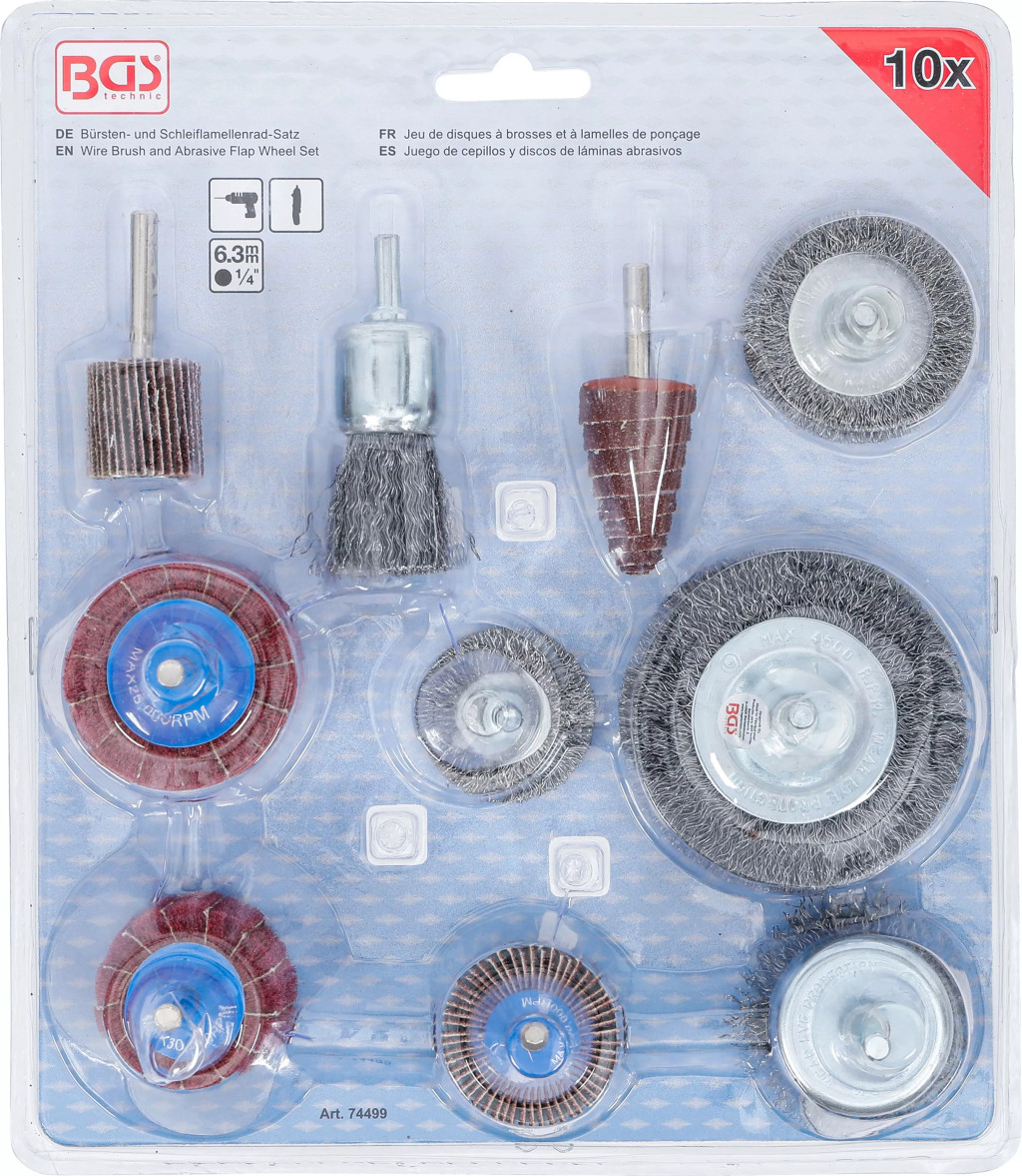 BGS technic Súprava drôtených kief a brúsnych kotúčov | 10 ks. (74499)