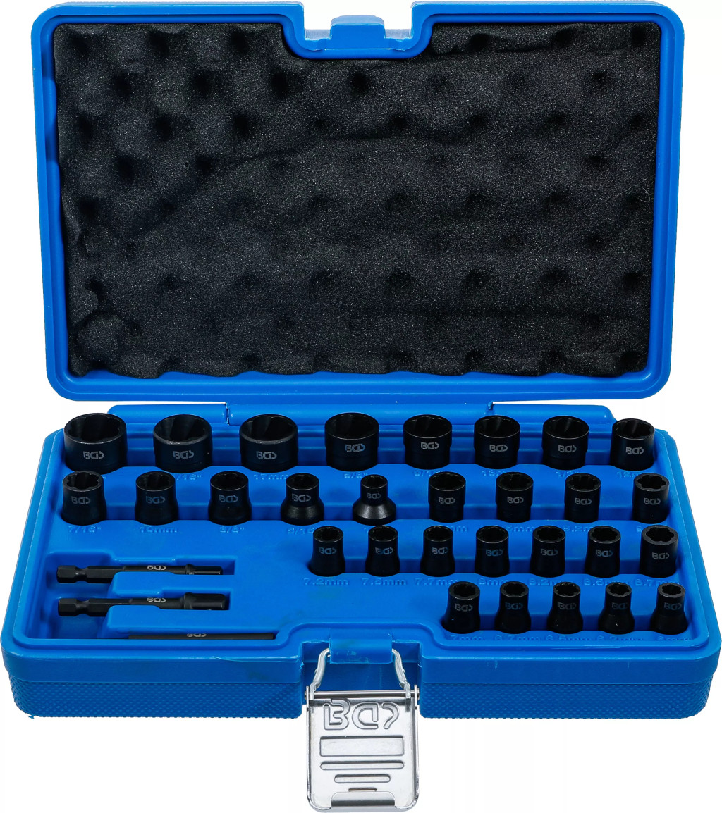 Rozsah dodávky:1 špirálový profilový objímkový kľúč / vyťahovač skrutiek | štvorhranný pohon 6,3 mm (1/4") | kľúč 6 mm1 špirálový profilový objímkový kľúč / vyťahovač skrutiek | upínací kľúč 6,3 mm (1/4") | kľúč 6,2 mm1 špirálový profilový objímkový kľúč / vyťahovač skrutiek | upínací kľúč 6,3 mm (1/4") | kľúč 6,5 mm1 špirálový profilový objímkový kľúč / vyťahovač skrutiek | upínací kľúč 6,3 mm (1/4") | kľúč 6,7 mm1 špirálový profilový objímkový kľúč / vyťahovač skrutiek | upínací kľúč 6,3 mm (1/4") | kľúč 7 mm1 špirálový profilový objímkový kľúč / vyťahovač skrutiek | upínací kľúč 6,3 mm (1/4") | kľúč 7,2 mm1 špirálový profilový objímkový kľúč / vyťahovač skrutiek | štvorhranný pohon 6,3 mm (1/4") | kľúč 7,5 mm1 špirálový profilový objímkový kľúč / vyťahovač skrutiek | upínací kľúč 6,3 mm (1/4") | vnútorný závit 7,7 mm1 špirálový profilový objímkový kľúč / vyťahovač skrutiek | štvorhranný pohon 6,3 mm (1/4") | kľúč 8 mm1 špirálový profilový objímkový kľúč / vyťahovač skrutiek | upínací kľúč 6,3 mm (1/4") | kľúč 8,2 mm1 špirálový profilový objímkový kľúč / vyťahovač skrutiek | upínací kľúč 6,3 mm (1/4") | vnútorný závit 8,5 mm1 špirálový profilový objímkový kľúč / vyťahovač skrutiek | upínací kľúč 6,3 mm (1/4") | vnútorný závit 8,7 mm1 špirálový profilový objímkový kľúč / vyťahovač skrutiek | upínací kľúč 6,3 mm (1/4") | kľúč 9 mm1 špirálový profilový objímkový kľúč / vyťahovač skrutiek | upínací kľúč 6,3 mm (1/4") | kľúč 9,2 mm1 špirálový profilový objímkový kľúč / vyťahovač skrutiek | upínací kľúč 6,3 mm (1/4") | kľúč 9,5 mm1 špirálový profilový objímkový kľúč / vyťahovač skrutiek | upínací kľúč 6,3 mm (1/4") | kľúč 10 mm1 špirálový profilový objímkový kľúč / vyťahovač skrutiek | 10 mm (3/8") štvorhranný pohon | 1/4" kľúč1 špirálový profilový objímkový kľúč / vyťahovač skrutiek | 10 mm (3/8") štvorhranný pohon | 5/16" SW1 špirálový profilový objímkový kľúč / vyťahovač skrutiek | 10 mm (3/8") štvorhranný pohon | 3/8" SW1 špirálový profilový objímkový kľúč / vyťahovač skrutiek | 10 mm (3/8") štvorhranný pohon | 10 mm SW1 špirálový profilový objímkový kľúč / vyťahovač skrutiek | 10 mm (3/8") štvorhranný pohon | 7/16" SW1 špirálový profilový objímkový kľúč / vyťahovač skrutiek | 10 mm (3/8") štvorhranný pohon | 12 mm kľúč1 špirálový profilový objímkový kľúč / vyťahovač skrutiek | 10 mm (3/8") štvorhranný pohon | 1/2" kľúč1 špirálový profilový objímkový kľúč / vyťahovač skrutiek | 10 mm (3/8") štvorhranný pohon | 13 mm kľúč1 špirálový profilový objímkový kľúč / vyťahovač skrutiek | 10 mm (3/8") štvorhranný pohon | 9/16" SW1 špirálový profilový objímkový kľúč / vyťahovač skrutiek | 10 mm (3/8") štvorhranný pohon | 5/8" SW1 špirálový profilový objímkový kľúč / vyťahovač skrutiek | vnútorný štvorhran 10 mm (3/8") | kľúč 17 mm1 špirálový profilový objímkový kľúč / vyťahovač skrutiek | 10 mm (3/8") štvorhranný pohon | 11/16" SW1 špirálový profilový objímkový kľúč / vyťahovač skrutiek | 10 mm (3/8") štvorhranný pohon | 3/4" kľúč1 napájací adaptér pre vŕtačky | šesťhranný upínač 6,3 mm (1/4") / štvorhranný upínač 10 mm (3/8")1 napájací adaptér pre vŕtačky | 6,3 mm (1/4") vonkajší šesťhran / 6,3 mm (1/4") vonkajší štvorhran1 nástroj na demontáž 7 x 90 mm