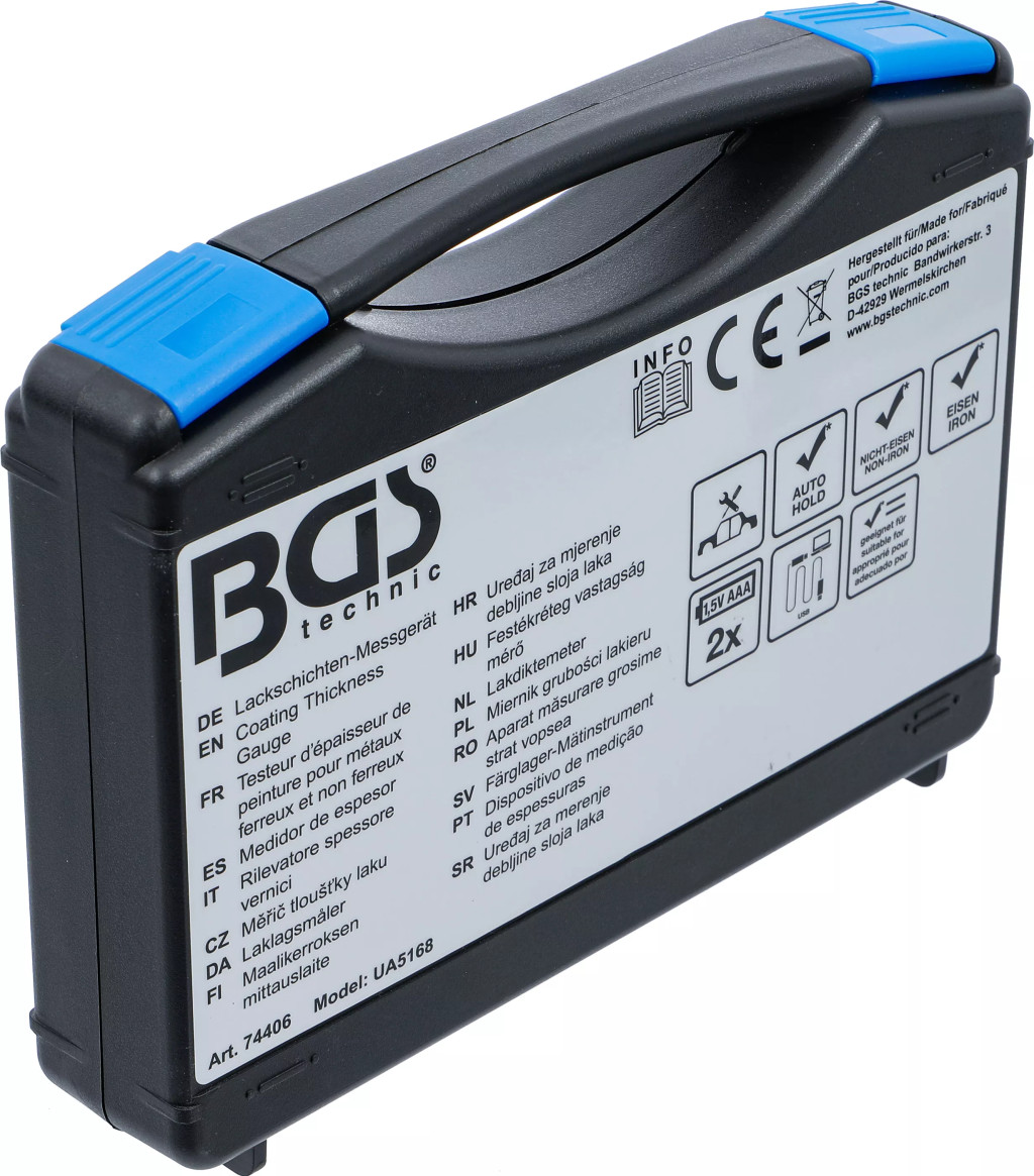 Popis:Na nedeštruktívne meranie hrúbky povlakuvhodné pre nemagnetické nátery ako sú farby, smalty, chróm na železných kovoch a izolačné nátery ako sú farby, eloxovanie na neželezných kovochLCD displej s maticou bodov 128 x 128ľahko zrozumiteľná navigácia v menurôzne režimy merania, ako napríklad jednotlivé a kontinuálne meraniaRežimy sondy ako indukcia a vírivý prúdSkupinové režimy ako priamy (DIR), namerané hodnoty sa po vypnutí stratia a všeobecný (GEN), namerané hodnoty sa po vypnutí zachovajú80 pamätí nameraných hodnôt pre každú skupinuNulová a viacbodová kalibrácia (až 4 body) pre každú skupinuVyhľadanie alebo vymazanie jednotlivo uložených nameraných hodnôt a vymazanie skupinových nameraných hodnôtŠtatistické zobrazenie priemeru, minima, maxima a odchýlkynastaviteľný horný alebo dolný limit alarmufunkcia automatického vypnutiaUSB rozhranie na prenos dát.