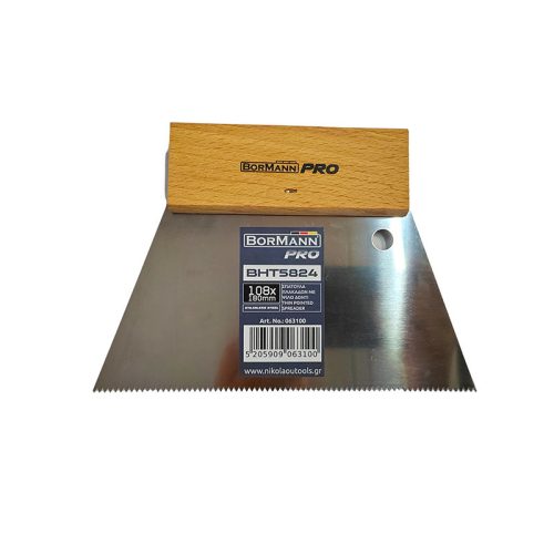 BORMANN Pro Nerezova špachtľa na roztieranie lepidla 108x180x100mm , zákrok 2,4mm (BHT5824)