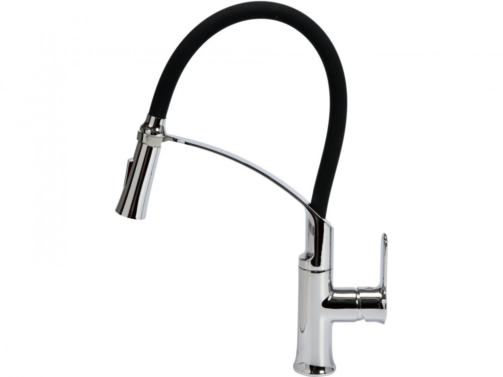 Flexibilná kuchynská batéria s rýchlo nastaviteľným výtokom.Praktická a estetická flexibilná batéria s otočným výtokom je inovatívnym riešením pre pohodlnú prácu pri kuchynskom dreze.