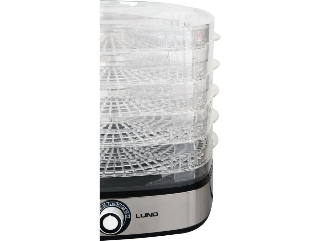 LUND sušička potravín 420–500 W – na huby, ovocie, zeleninu a ďalšie.Elektrická sušička potravín je ideálnou voľbou na sušenie ovocia, zeleniny, húb, kvetov, byliniek, mäsa či rýb.Umožňuje zachovať výživovú hodnotu a chuť potravín, pričom ich prirodzene konzervuje aj na niekoľko mesiacov.
