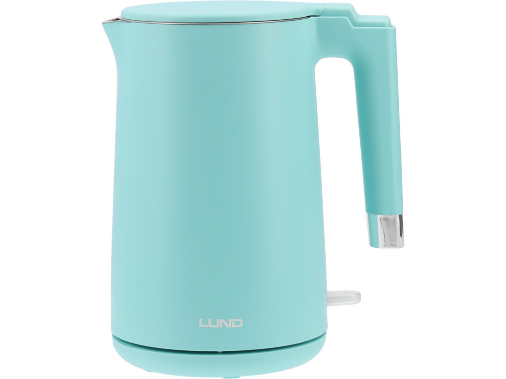 Rýchlovarná kanvica LUND GRF 1,5 l – tyrkysová, nerezová, s dvojitou stenou.Rýchlovarná kanvica LUND GRF (68208) s objemom 1,5 litra je praktickým a štýlovým doplnkom do každej modernej kuchyne. Vďaka minimalistickému dizajnu a elegantnej tyrkysovej farbe sa dokonale hodí do súčasných interiérov a zároveň ponúka spoľahlivý výkon pri každodennom používaní.Kanvica je vybavená dvojitou stenou, ktorá zvyšuje bezpečnosť a pomáha udržiavať teplotu vody. Vnútorná stena a veko sú vyrobené z kvalitnej nehrdzavejúcej ocele 304, ktorá je hygienická, odolná a vhodná na kontakt s potravinami. Vonkajší plášť z polypropylénu (PP) znižuje riziko popálenia a zlepšuje tepelnú izoláciu.Výkonné skryté vykurovacie teleso z nehrdzavejúcej ocele s príkonom 1850–2200 W zabezpečuje rýchly ohrev vody. 360° otočná základňa umožňuje pohodlné používanie pre pravákov aj ľavákov. Praktickou výhodou je aj možnosť uloženia napájacieho kábla v základni.O bezpečnosť sa stará automatické vypnutie po dosiahnutí bodu varu a ochrana proti prehriatiu. Veľký plniaci otvor uľahčuje nalievanie vody aj čistenie a odnímateľný sieťový filter zachytáva nečistoty a vodný kameň, čím prispieva k čistej chuti vody.