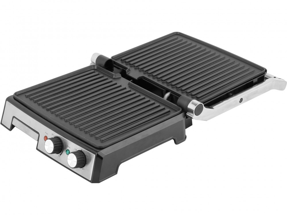 TECHNICKÉ INFORMÁCIE:Výkon: 2000 WNapätie: 220–240 V, 50/60 HzRozmer grilovacích dosiek: 29,5 × 24 cmGrilovacia plocha v zatvorenom stave: 708 cm²Grilovacia plocha v otvorenom stave: 1416 cm²Nepriľnavý povrch – jednoduché čistenieNerezové prvky na kryteRegulácia teplotyČasovač s možnosťou nastavenia do 30 minút (odpočítavanie času)Svetelná kontrolka napájania a pripravenosti3 režimy grilovania:zatvorený gril – na panini, toasty, mäsootvorený v uhle 90° – pre menšie porcieotvorený v uhle 180° – plošný gril pre dvojnásobnú plochuAutomatické prispôsobenie výšky hornej dosky podľa hrúbky jedlaTepelne izolovaná rukoväťOdkvapkávacia miska na tukZvýšený okraj uľahčuje udržiavanie čistoty okolo griluDvojstranný rebrovaný povrch – rovnomerné prepečenie jedlaRozmery produktu: 34 × 35,5 × 13,5 cmDĺžka kábla: 70 cmVÝHODY:Vysoký výkon a efektívne grilovanie – výkonný 2000 W ohrievač a kvalitné vedenie tepla skracujú čas prípravy.Veľká grilovacia plocha – dosky s rozmermi 29,5 × 24 cm umožňujú pripraviť až 6 toastov naraz. Vďaka možnosti úplného otvorenia (180°) možno využívať obe dosky súčasne.Prispôsobiteľná výška dosiek – horná platňa sa prispôsobí výške pripravovaného jedla.Elegantný dizajn – klasické čierne prevedenie v kombinácii s nerezovými prvkami sa hodí do každej kuchyne.PARAMETRE:Frekvencia: 50–60 HzNapätie: 220–240 VVýkon: 2000 WTyp grilu: kontaktný panini gril, skladací.