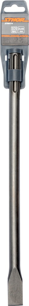 STHOR ploché dlátko SDS-Max 25 × 18 × 400 mm (23604) – do betónu a murivaSTHOR ploché dlátko 23604 je profesionálny a odolný nástroj určený na sekanie, drážkovanie a opracovanie betónu, muriva a tvrdých stavebných materiálov. Vďaka SDS-Max uchyteniu je kompatibilné s ťažkými sekacími kladivami a príklepovými vŕtačkami, čo umožňuje rýchlu a bezpečnú výmenu nástroja bez dodatočných adaptérov.Plochý tvar dlátka umožňuje rovnomerné a presné odstraňovanie materiálu, tvorbu drážok a úpravu betónových a murárskych plôch. Vyrobené z kvalitnej ocele 40CrV s kalenej povrchovou úpravou, dlátko poskytuje vysokú odolnosť proti opotrebovaniu aj pri intenzívnom používaní.S dĺžkou 400 mm, priemerom 25 mm a pracovnou šírkou 18 mm poskytuje dlátko stabilitu, presnosť a efektivitu pri práci. Ideálne pre profesionálne aj domáce použitie na stavebných projektoch.