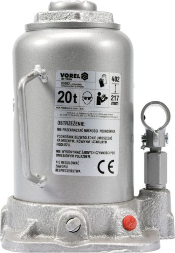 Hydraulický zdvihák Vorel 20 t.Profesionálny hydraulický zdvihák Vorel určený na zdvíhanie ťažkých bremien s maximálnou nosnosťou 20 ton. Ideálny pre autoservisy, priemysel a stavebníctvo, kde je potrebné bezpečne a efektívne manipulovať s ťažkými objektmi.