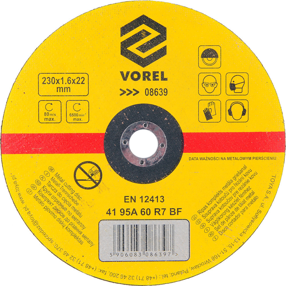 VOREL KOVOVÝ REZNÝ KOTÚČ 230x1,6x22MM (08639)