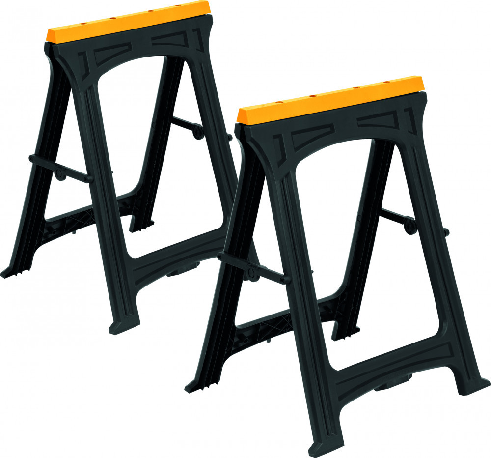 Vlastnosti a výhody:Sada 2 kusov – praktické využitie pre rôzne typy pracovných úlohMaximálna nosnosť 75 kg / ks – vhodné pre bežné pracovné materiály a vybavenieSkladací dizajn – jednoduché prenášanie a úspora miesta pri skladovaníRobustná konštrukcia z PP, TPR a ABS – odolnosť voči poškodeniu a dlhá životnosťUniverzálne použitie – dielne, garáže, domácnosť, renovácie, dokončovacie práceKompaktné rozmery: 520 × 780 mm.