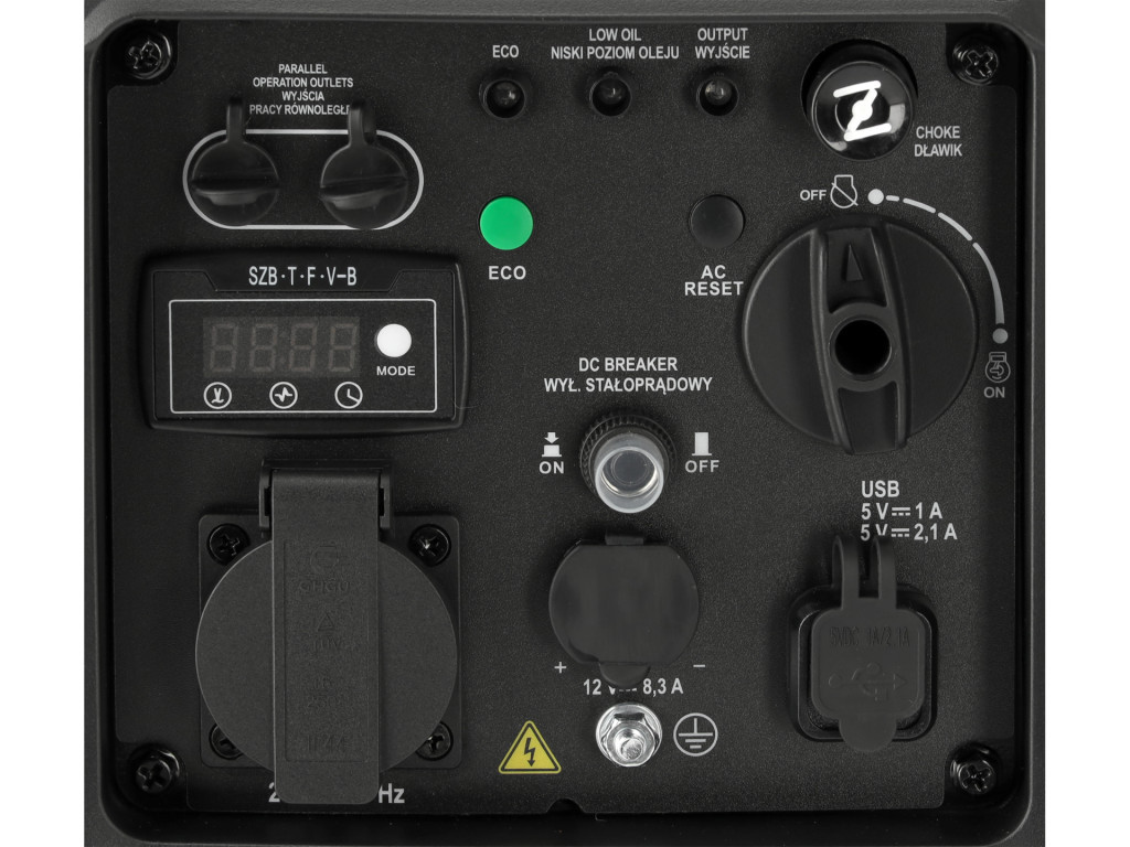 Parametre generátora:Nominálny výkon: 1900 WMaximálny výkon: 2000 W (S2 5 min)Napätie: 230 V AC, 5/12 V DCFrekvencia: 50 HzPrúd AC/DC: 8,3 ATrieda ochrany: IP23MTrieda izolácie: IMotor:Typ: R80-i, jednovalcový, štvortaktný benzínový motorPalivo: bezolovnatý benzínOlej: SAE 15W-40Štart: manuálnyObjem valca: 80 cm³Maximálny výkon motora: 2,4 kWMax. otáčky: 5200 ot./minChladenie: vzduchomKompresný pomer: 10,5:1Palivová nádrž: 4 lOlejová nádrž: 0,45 lZapaľovacia sviečka: TORCH A5RTCVlastnosti zariadenia:Prevádzková teplota: 0–40 °CMaximálna prevádzková nadmorská výška: 1000 mPrehľadný ovládací panel so signalizačnými LEDOchrana proti preťaženiu a spätnému prúduECO režim pre úsporu palivaPrenosné madlo2 × 230 V výstupné zásuvkyHlučnosť: 94 dB (LwA), 72 ± 2 dB(A) hladina akustického tlakuRozmery: 440 × 290 × 440 mmHmotnosť: 17 kgZhrnutie technických parametrov:Maximálny výkon: 2000 WNominálny výkon: 1900 WNapätie: 230 VFrekvencia: 50 HzObjem valca: 80 cm³Palivová nádrž: 4 lOlejová nádrž: 0,45 lOtáčky voľnobehu: 3300 ± 100 ot./minKompresný pomer: 10,5:1Prenosné madlo: áno (1 ks)Chladenie: vzduchomZapaľovacia sviečka: TORCH A5RTCHlučnosť: 72 ± 2 dB(A) SPL, 92 ± 2 dB(A) LwAHmotnosť: 17 kgSpoľahlivý a kompaktný inverterový generátor 2000 W je ideálny pre domáce, pracovné alebo outdoorové použitie, poskytuje stabilný a bezpečný prúd aj pre citlivé elektronické zariadenia.