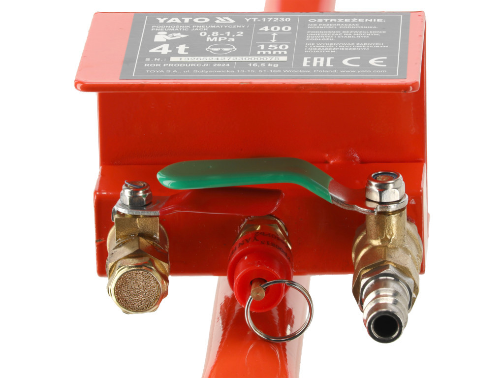 Pneumatický zdvihák typu „snehuliak“ – nosnosť 4 tony.Výkonný pneumatický zdvihák typu snehuliak s nosnosťou až 4 tony je ideálnym pomocníkom pre rýchle, jednoduché a bezpečné zdvíhanie osobných áut aj dodávok. Vďaka silnej pneumatickej konštrukcii umožňuje bez námahy zdvihnúť vozidlo v priebehu niekoľkých sekúnd, čo výrazne zefektívňuje servisné a údržbové práce.Zdvihák ponúka široký rozsah výšky zdvihu, ktorý je vhodný aj pre vozidlá s vyšším podvozkom. Robustné prevedenie z kvalitného železa a odolnej gumy zaručuje dlhú životnosť a spoľahlivú stabilitu počas používania.Ergonomicky tvarovaná, dlhá rukoväť zaisťuje jednoduché ovládanie a pohodlnú manipuláciu v každej situácii.
