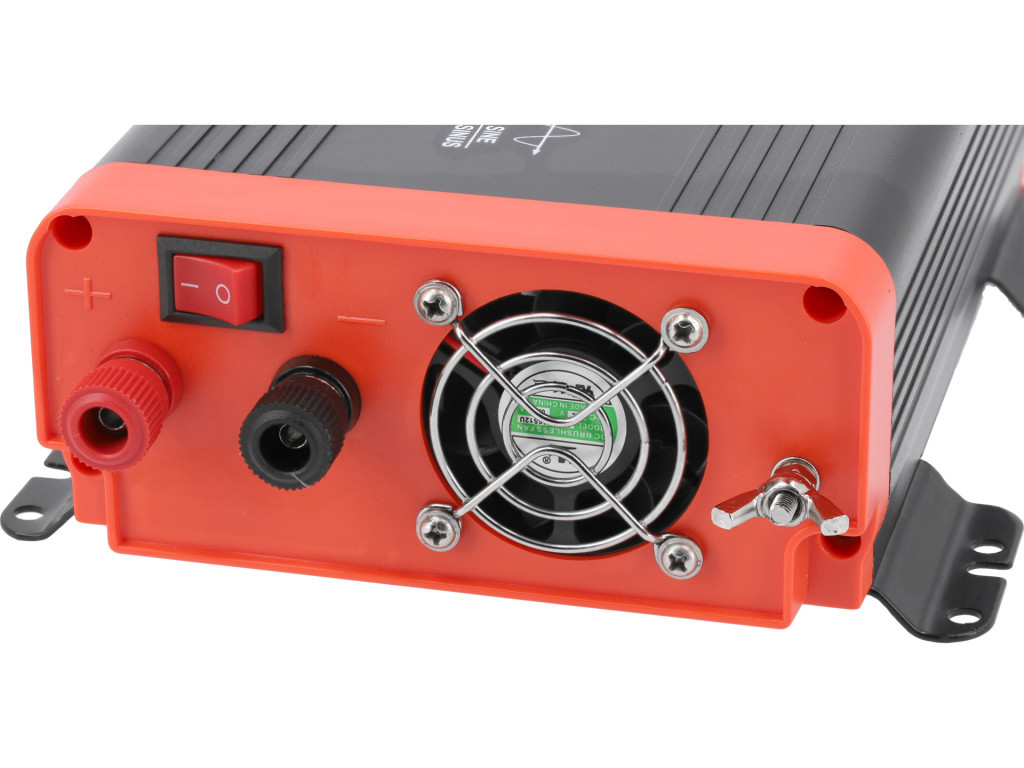 Menič napätia 12 V → 230 V, čistá sínusová vlna, 300 W.Tento kompaktný menič napätia umožňuje napájanie elektrických zariadení vyžadujúcich 230 V zo 12-voltovej autobatérie. Vďaka malým rozmerom, nízkej hmotnosti a vysokému výkonu je ideálny pre použitie v oblastiach bez prístupu k elektrickej sieti, napríklad na cestách, v karavanoch alebo pri outdoorových aktivitách.