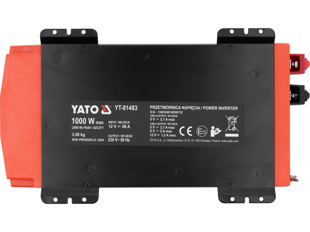 Menič napätia 12V → 230V so čistou sínusovou vlnou – 1000 W.Tento menič napätia umožňuje napájať elektrické zariadenia vyžadujúce 230 V z 12-voltovej autobatérie. Vďaka kompaktným rozmerom, nízkej hmotnosti a vysokému výkonu je vhodný pre napájanie rôznych spotrebičov na miestach bez prístupu k elektrickej sieti.