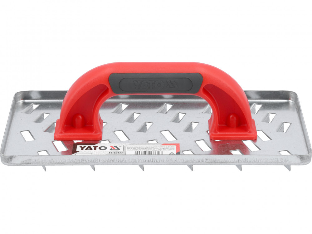 Technické parametre:Značka: YatoZodpovedný subjekt v EÚ: TOYA S.A.Séria: GRDSymbol / kód produktu: YT-52477Rozmery pracovnej časti: 285 × 145 mmHrúbka plechu: 1 mmVýška pracovnej časti: 21 mmMateriál pracovnej časti: pozinkovaný plechMateriál rukoväte: PVC, dvojzložková ergonomickáRozmery rukoväte: 192 × 41 mmVýška rukoväte: 70 mmTvar: obdĺžnik.