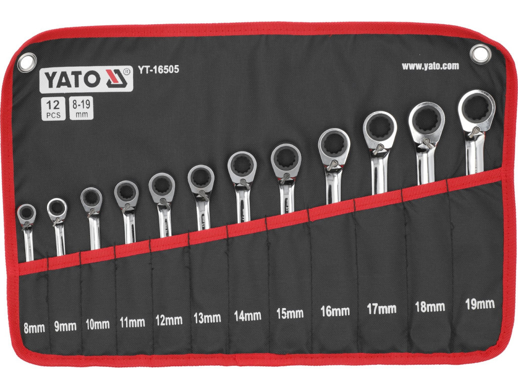Yato sada 12 očkových kľúčov s račňou.Táto sada 12 kombinovaných kľúčov s račňou je ideálna do dielne, garáže či profesionálneho servisu. Praktický kufrík umožňuje pohodlný prístup ku kľúčom a zároveň udržuje poriadok vo vašej dielni.
