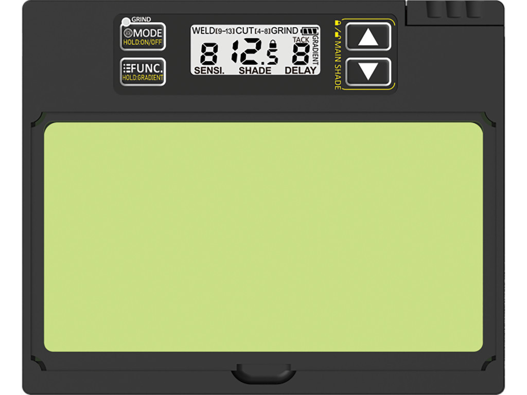 Technické vlastnosti:Certifikácia: EN 166:2001, EN 175:1997, EN ISO 16321-1:2021Optická trieda: 1/1/1/1Rozsah stmievania: tmavý stav DIN 5–8 / 9–13, svetlý stav DIN 4Veľkosť filtra: 100 × 90 mmVeľkosť ochranného skla: 270 × 140 mmVeľkosť zobrazenia: 100 × 53 mmMateriál priezoru: PA6, polykarbonát (P.C.)Štyri oblúkové senzory pre presnú detekciu oblúka (TIG už od 5 A)4-bodový pás a nastaviteľný čelník pre vysoký komfort.Funkcie a vlastnosti:Automatické stmavenie TRUE COLORGradient – plynulý prechod zo stmaveného do svetlého stavuTack mode – filter prechádza do medzistavu (DIN5) pri bodovom spájaníFunkcia brúsenia – maska chráni oči pri rezaní alebo brúsení kovovTlačidlo TEST – kontrola funkčnosti každej úrovne stmievaniaNastavenie citlivosti a času prechodu zo stmaveného do svetlého stavu: 0,05–2 sAutomatické zapnutie/vypnutieOchrana pred UV/IR žiarením až do úrovne DIN 13.Napájanie:Solárny panel + batéria CR2032 (1 × 3 V)Indikátor slabej batériePrevádzková teplota: -5 až +55 °CSkladovacia teplota: -20 až +70 °CAplikácia:Zváranie MMA, MIG, MAG, TIGOchrana pri rezaní a brúsení kovov.Materiál a konštrukcia:Plášť z odolného, nehorľavého plastu PAPohodlný štvorbodový pás s nastavením veľkosti a uhlaVysoký komfort a ergonomické prispôsobenie individuálnym požiadavkám.