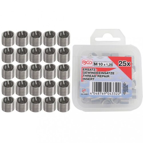 BGS technic Súprava náhradných závitových vložiek | M10 x 1.25 mm | 25 ks (BGS 9428-1)