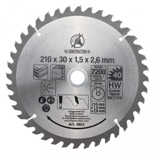 BGS DIY Pílový kotúč s karbidovými zubami | Ø 210 x 30 x 2.6 mm | 40 zubov (BGS 3953)