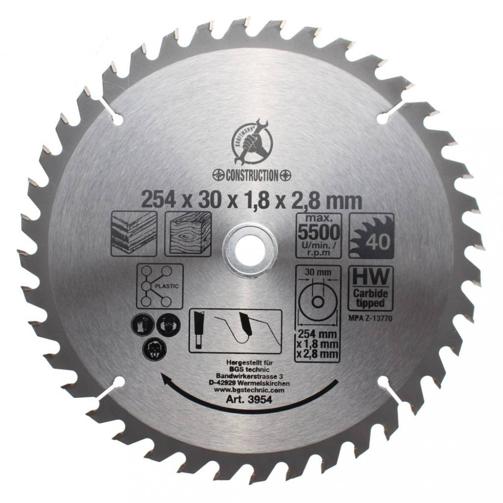 BGS DIY Pílový kotúč s karbidovými zubami | Ø 254 x 30 x 3.2 mm | 40 zubov (BGS 3954)