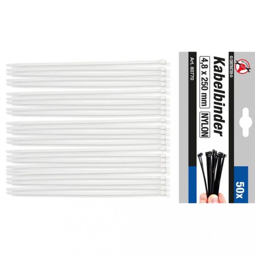 BGS DIY Viazacie pásky na káble | biele | 4.8 x 250 mm | 50 ks (BGS 80770)