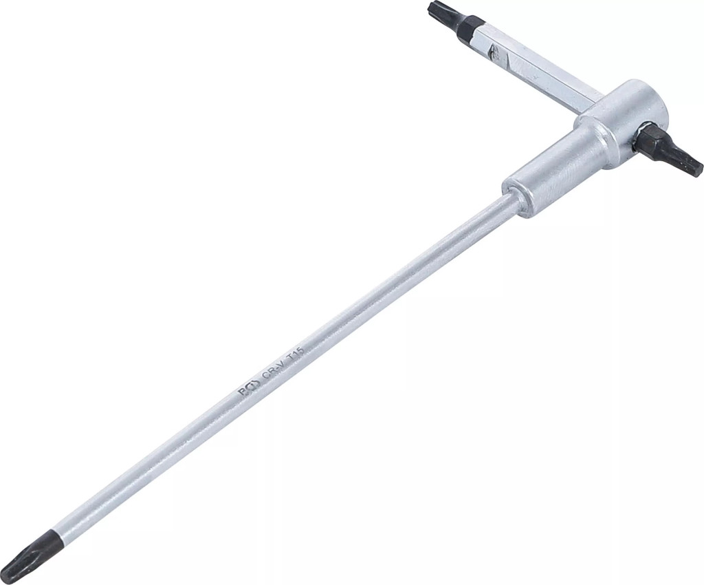 Technické údaje:Určenie: remeselné a priemyselné použitieTyp profilu: Torx (T-profil)Profil pohonu: trojstranný (3-hran)Vhodné do ťažko dostupných miest: ánoKompatibilita čepelí: krátke aj dlhéOznačenie: materiál a veľkosťKonštrukcia: posuvná čepeľ s poistným kolíkomSpracovanie: profesionálna kvalita.