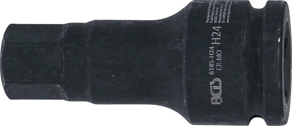 Nástrčná hlavica Inbus 24 mm | 3/4" | 100 mm | Cr-MoTáto nástrčná hlavica s vnútorným šesťhranom (Inbus) 24 mm je určená pre profesionálne použitie pri montáži a demontáži skrutiek s vnútorným šesťhranom. Vďaka robustnej konštrukcii je vhodná pre použitie s ručným náradím aj ručnými rázovými uťahovákmi, čo umožňuje bezpečný prenos vysokého krútiaceho momentu.Hlavica je vyrobená z vysokopevnostnej chróm-molybdénovej ocele (Cr-Mo), ktorá zabezpečuje vysokú odolnosť proti nárazom, opotrebeniu a dlhú životnosť aj v náročných dielenských podmienkach.Upnutie pre aretačný kolík a gumový O-krúžok zaručuje bezpečné uchytenie na rázovom náradí.