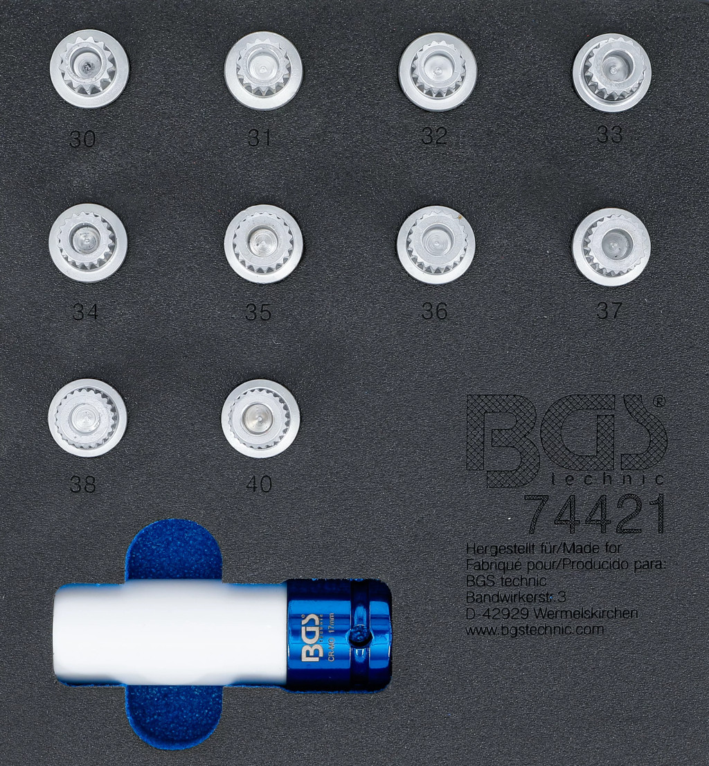 Súprava na montáž a demontáž zámkov kolies BMW.Profesionálna sada určená na bezpečné uvoľnenie a utiahnutie zámkov kolies BMW bez poškodenia.Všetky prvky sú uložené vo vložke z robustnej, vysoko kvalitnej tvrdej peny, ktorá spoľahlivo chráni náradie a zabraňuje jeho pohybu počas prepravy či používania.Každý nástroj má presne tvarované miesto na prehľadné uskladnenie.Súprava je kompatibilná so všetkými dielenskými vozíkmi a nástennými systémami BGS.