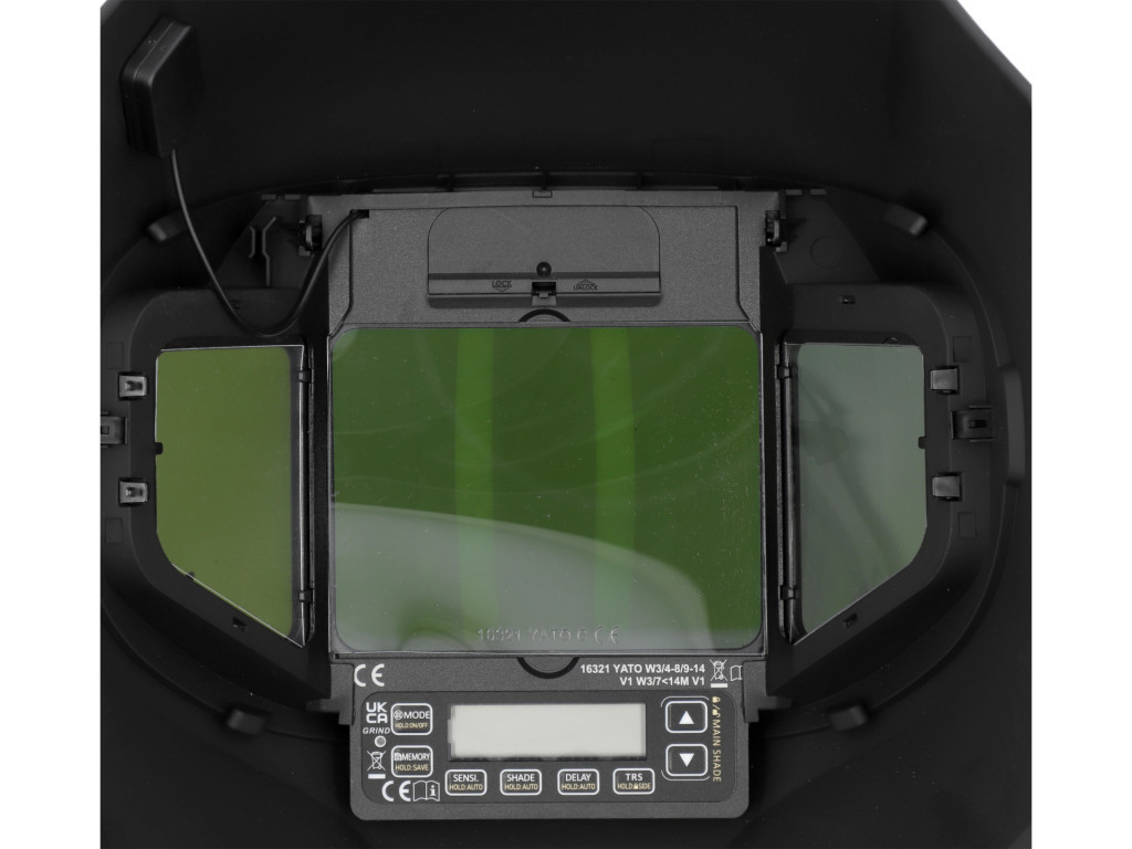 Hlavné vlastnosti:9 úrovní tienenia a citlivosti na intenzitu svetelného zdrojaAutomatický režim: prilba sama nastavuje úroveň tienenia, citlivosť a čas jasu v reálnom časeManuálne nastavenie času prepnutia: 0,05–2 sekundyCertifikovaný filter triedy 1/1/1/1 s veľkým zorným poľom: hlavný filter 108 × 82 mm, bočné filtre 60 × 61 mm s automatickým stmievanímOchrana UV/IR žiarenia: DIN 16Odolný polykarbonátový kryt filtra chráni pred iskramiŠtyri oblúkové senzory a presná elektronika detekujú oblúk už od 5 A (TIG zváranie)Napájanie: solárny článok + 2 batérie CR2450Funkcia bodového zvárania: automatické prepnutie medzi DIN 5 (tmavé) a DIN 3 (svetlé)Funkcia gradientu: plynulý prechod medzi tmavým a svetlým stavom, znižuje únavu očíRežim brúsenia: možnosť ochrany očí pri brúsení a rezaní kovuTlačidlo TEST: kontrola správnej funkcie automatického stmievacieho filtraOdolná škrupina: nehorľavý PA plastKomfortné nastavenie: štvorbodový postroj, potný pás, systém nastavenia veľkosti a uhla prilbyVýhody:Presné sledovanie oblúka v reálnych farbáchMinimalizuje únavu očí pri dlhšej práciVhodné pre profesionálnych zváračov aj hobby použitieVysoký komfort a bezpečnosť vďaka ergonomickému dizajnu a odolnej konštrukcii.
